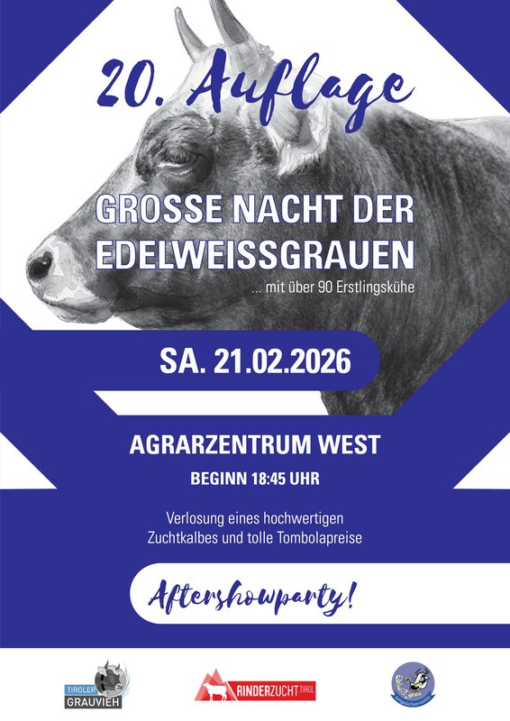 Die Tierschau findet am Samstag, 21. Februar 2026, im Agrarzentrum West in Imst statt. Mit beeindruckenden 92 Erstlingskühen erwartet die Besucherinnen und Besucher eine außergewöhnliche Schau. Mit viel Leidenschaft präsentieren die engagierten Jungzüchterinnen und Jungzüchter ihre Tiere unter stimmungsvollen Lichteffekten – authentisch, natürlich und mit großer Hingabe zur Zucht.