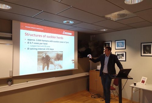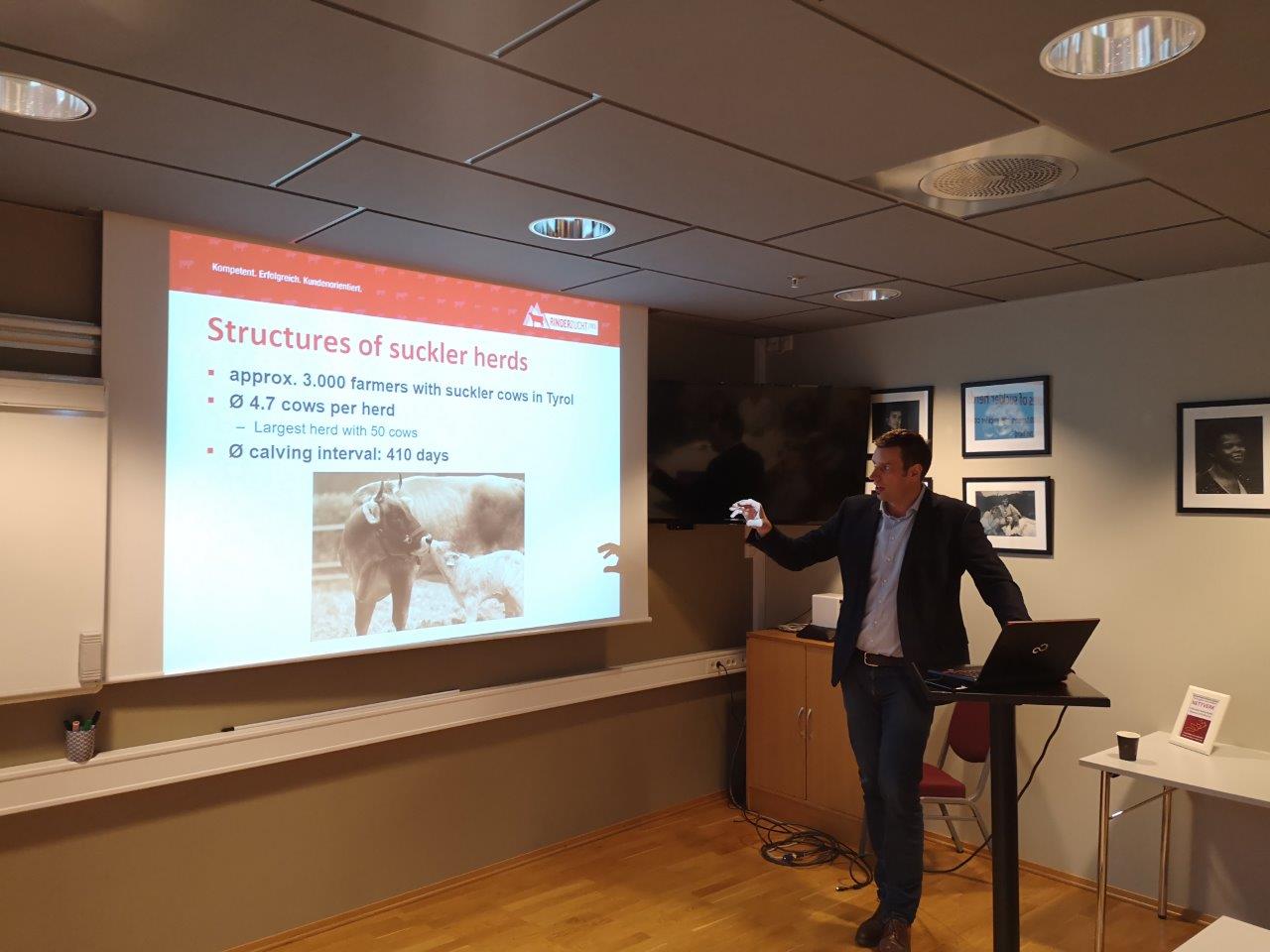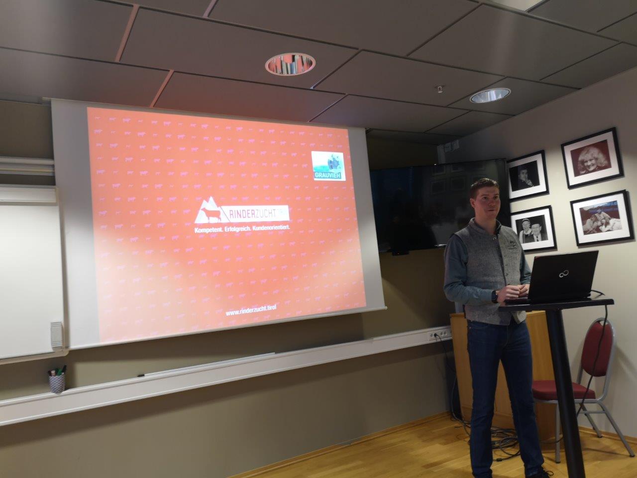 Mehrmals waren verschiedene Exkursionsgruppen aus Norwegen in den letzten Jahren in Tirol zu Besuch. Am letzten Jännerwochenende machte sich nun Zuchtleiter Raphael Kuen gemeinsam mit Michael Wurzrainer ein Bild vor Ort. Im Zuge der Generalversammlung des norwegischen Zuchtvereines wurden Fachvorträge gehalten. Zum einen wurden züchterische Inhalte, zum Zuchtprogramm im Allgemeine, zur Exterieurbewertung sowie der Stierzucht vermittelt. Zum anderen referierte Wurzrainer Michael zur Qualitätsfleischerzeugung. Besonders groß war auch das Interesse an der praktischen Schulung an einem der Mitgliedsbetriebe.