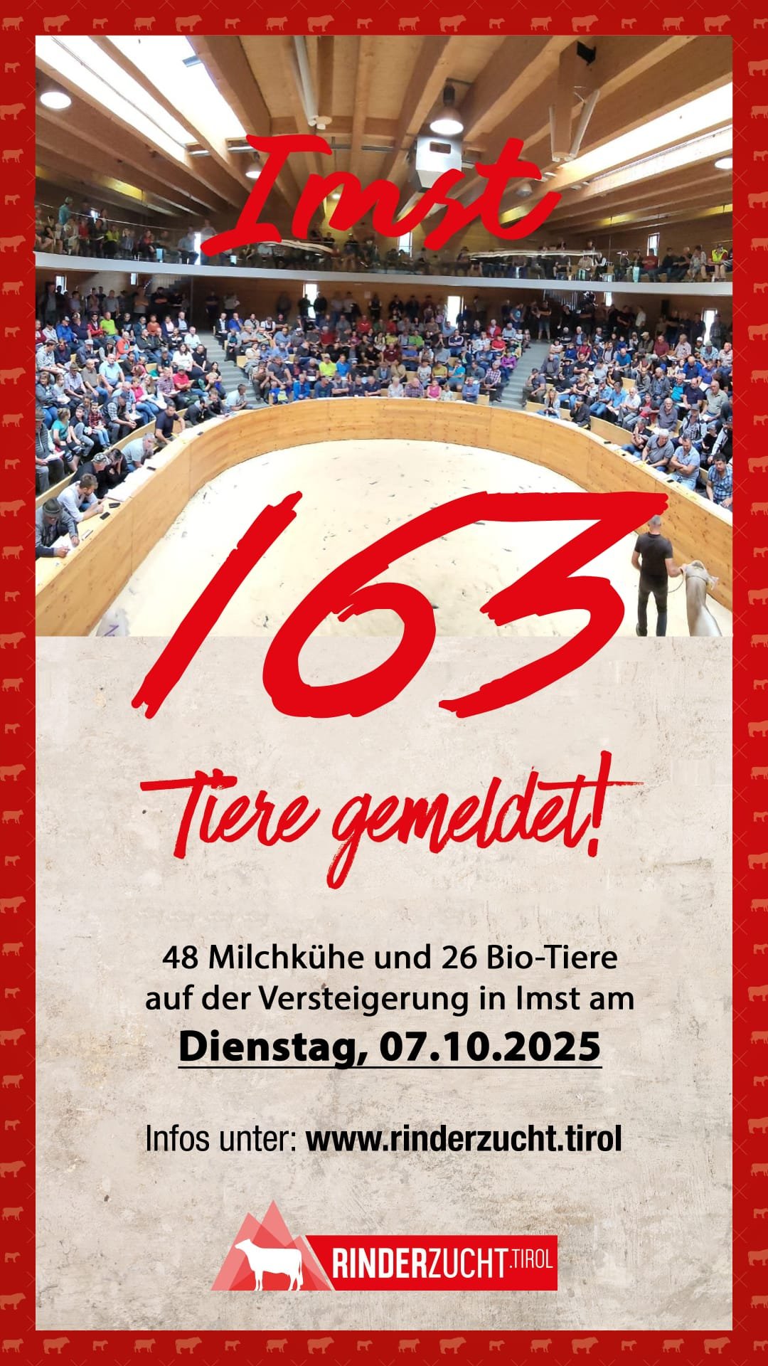 Am kommenden Dienstag, 07.10.2025, findet der Hauptstiermarkt in Imst statt. Auch ein sehr ansprechendes Angebot an Milchkühen wird vermarktet.