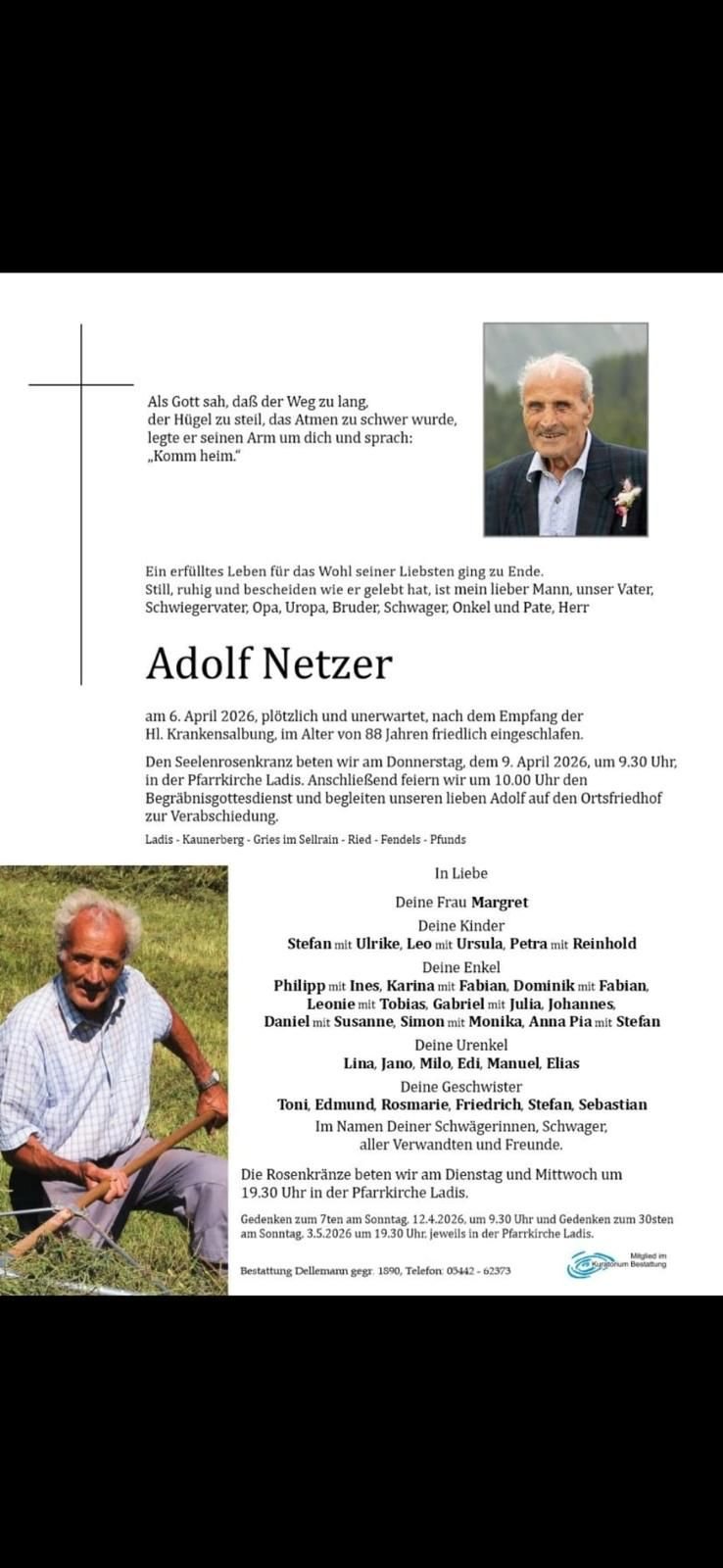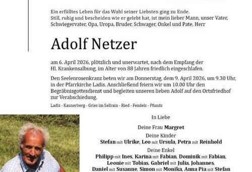 Adolf Netzer war ein Mann klarer Haltung, großer Erfahrung und verlässlicher Tatkraft. Mit ihm verliert die bäuerliche Gemeinschaft einen engagierten Vertreter, einen überzeugten Förderer der Grauviehzucht und einen Menschen, der bleibende Spuren hinterlässt.
